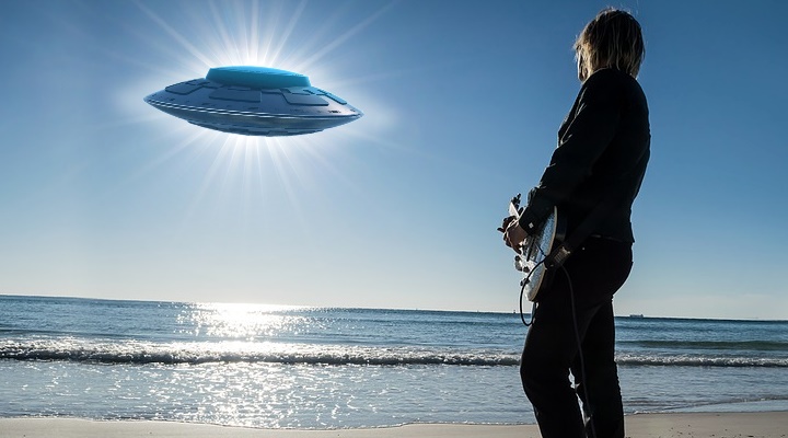Superstar Robbie Williams will in einer „Alien-Dokumentation“ über seine UFO-Erfahrungen berichten (Bilder: gemeinfrei / Montage: Fischinger-Online)